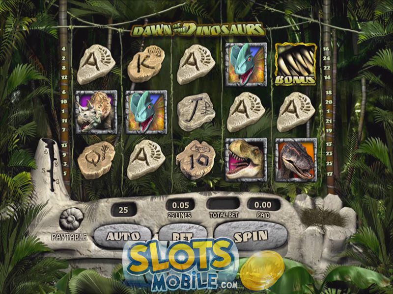 Dinosaurs may be extinct, but they return in all its glory on the reels of Dawn of the Dinosaurs mobile slot that is available in 888 Mobile Casino and can be played on iPhone, iPad, iPod Touch and Android devices. It comes with five reels, twenty five paylines and three rows of symbols, featuring high-quality graphics and great animations.